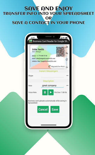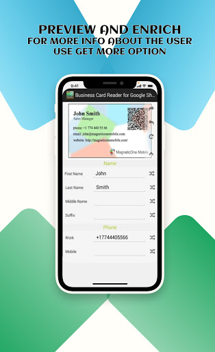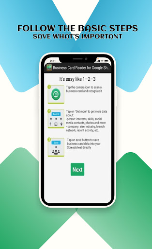 Snap a photo of the business card and Google Sheets Card Scanner instantly import all card data directly into your Google Sheets. Moreover, this app helps you to find out more information about your potential client, partner, or colleague.
