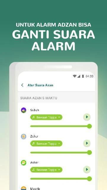 Mengganti suara alarm Azan langsung di pengaturan, kamu bisa menyesuaikan dengan lagu kesukaan kamu, atau bahkan suara Azan yg kamu punya