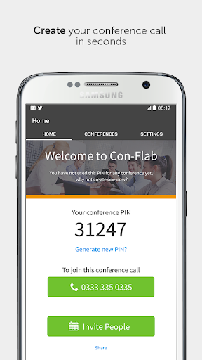 CON-FLAB is the easy way to create, manage and join your conference calls. Conferences can be accessed from Landlines, Mobile phones, internationally or directly from the app. Invite participants from your contacts via SMS and email. All conferences are recorded automatically and made available to download straight to your Android device in MP3 format or via the web site. CON-FLAB is the indispensable conferencing tool for anyone wishing to communicate smarter as part of a group.