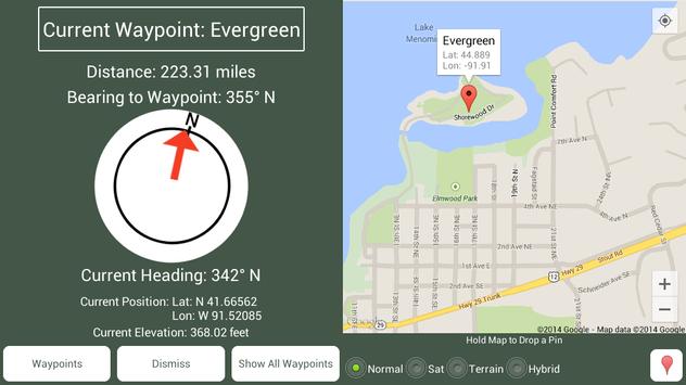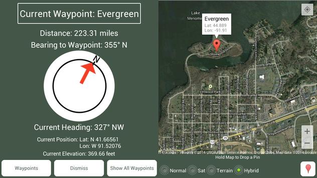Free GPS also shows your current waypoint and location on a map for easy navigation!