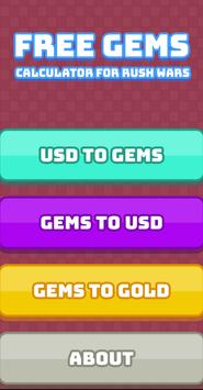 * "Free Gems Calculator For Rush Wars" is only to help the gamer in calculating the cost of the gems.
