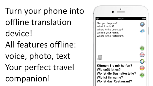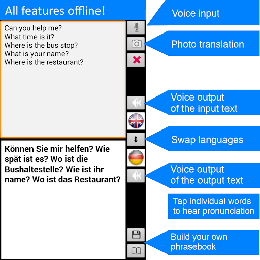 Offline* speech translator and dictionary -- the ultimate foreign language tool for English and German when you are abroad! Save on data roaming charges when you travel!