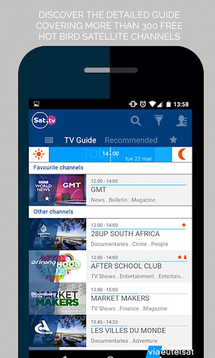 Sat.tv is now also available on satellite set-top-boxes: This new version provides the channel number on which you can find each channel from Eutelsat/Nilesat and Hotbird on the compatible satellite receivers.