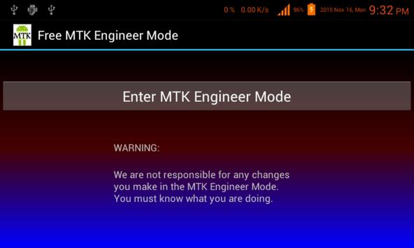 This is a small and simple app that invokes the Media Tek Engineer Mode without using the phone dialer. It works on all MTK devices.