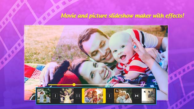 Movie Maker for android is an photo slideshow app. You can add multiple photos, add music and make your own video of your video slideshow