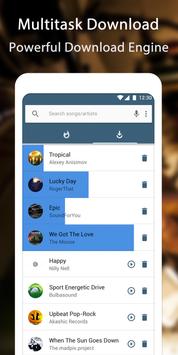 “Downloading” tab shows the downloading MP3 songs and downloaded music which you can play or delete.