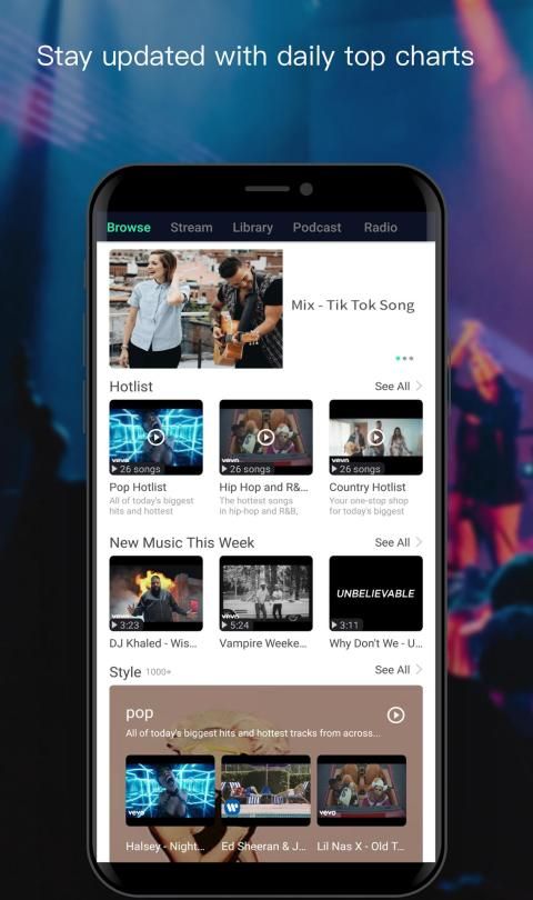 • Discover best free music by mood, activity, genres, daily updated top charts, weekly top playlists