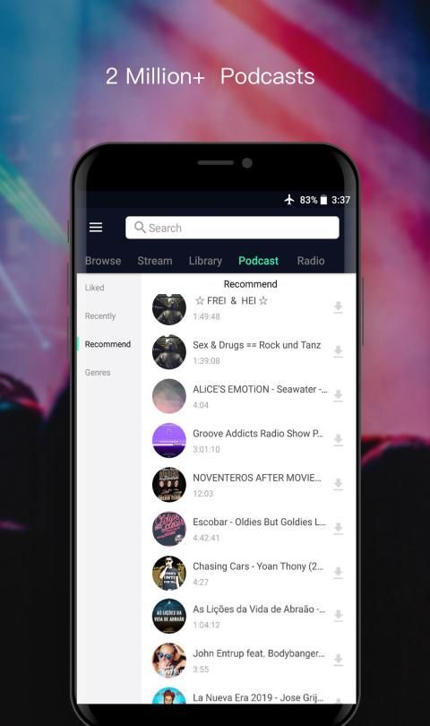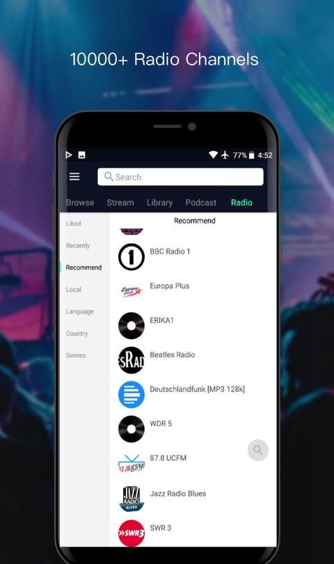 • Discover free music with tons of predefined genres: Popular Music, Hip Hop, Rock, Classical, R&B, Jazz, Disco, Country, etc