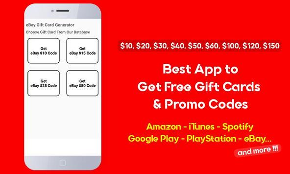 • Get Ebay $15, $25, $70 Gift Card with our Ebay dummy Free Gift Code Generator.