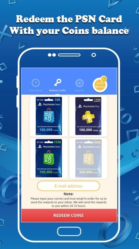 Feel free to withdraw your coins into playstation plus codes whenever you want. Then link the store and enter the code in the offered space. Pay attention that you can use psn card only once. If you want to get more bonuses, you need to complete more tasks to earn extra coins.