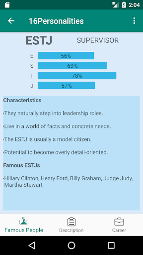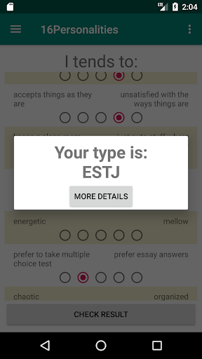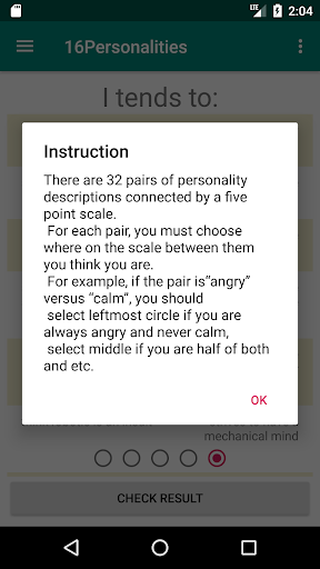 This 16 personalities test is based on four dichotomies and is the system used in the Myers Briggs Type Indicator MBTI and Keirsey Temperament Sorter instruments, among many others.