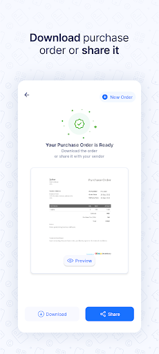 ➤ You can download the PDF of the purchase order to your device, email it or share it with your supplier instantly.