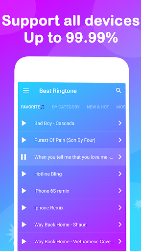 Not only this application is also constantly updated with the latest ringtones, today's hottest ringtones with many topics & different genres, it is extremely rich. You just need to choose your favorite ringtones. Types of ringtones include: Music By Name, Funny Ringtones, Christmas Ringtones, Remix Ringtones, Bolero Music, Alarm Sounds, Message Ringtones, Latest Music, Hottest Music ... and so much more.