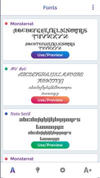 First screen to display the list of option which you want to choose for sample font style.