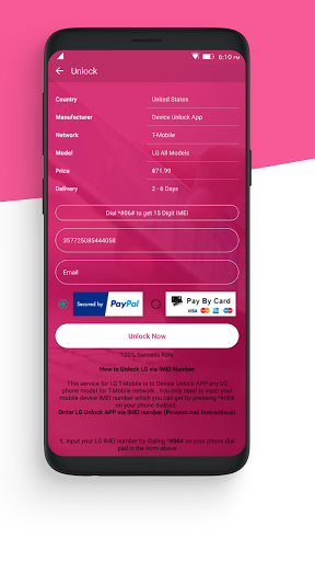 This app will unlock certain mobile networks like AT&T for free, and for other networks, such as T mobile – you’d have to pay a tiny amount to unlock the sim card to use on your LG phone.