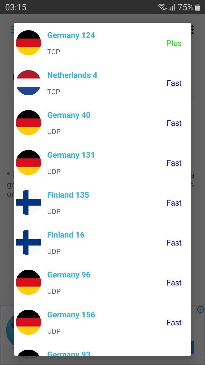 - List of countries around the world to choose from which we test and update every 20 minutes!
