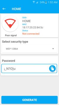 * Generate random and secure password for every type of security like WEP, WPA, WPA2