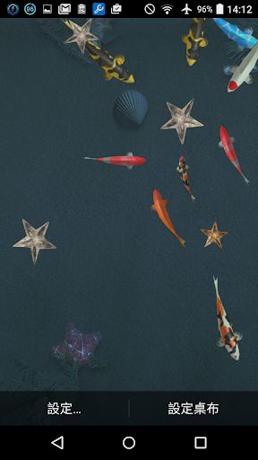 Besides playing with the water, the wallpaper provides many other fun ways to fill in a dull moment and bring a smile to your face. For example, you can tap the beautiful koi fish and watch them swim away and you can change the river bed from stony floor to earthy. You can create your own aquarium or pond by selecting the creatures you want.