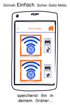 Only 1 scan and you are in the secure WLAN. You and your friends have no longer to manually type your eternally long WiFi password. - # 1scan2wifi -