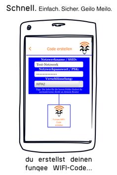 Create your unique funqee WiFi QR code. Save it locally in your app, to share your WLAN password.