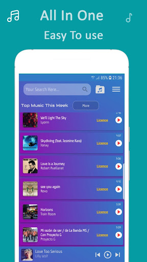 Now With Our Free Music downloader - music Download app You can Enjoy Listening downloading free Music Around The World , all that by simple music Search to find your favorite music to listen and to download, Free Music downloader - music Download allows you to download free licensed mp3 music