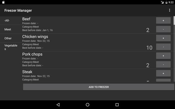 Sitting in the couch planning what to have for dinner tomorrow and can not remember what you have in your freezer? Just check Freezer Manager.