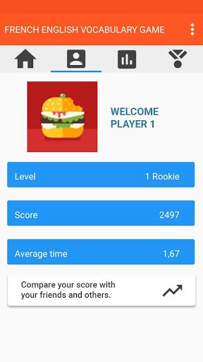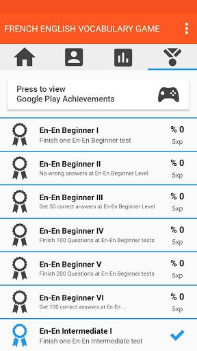 The French English vocabulary game is divided into Beginner, Intermediate and Advanced levels, total 14405 English words can be played in French level.
