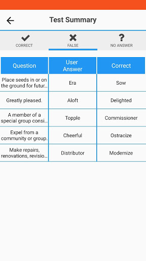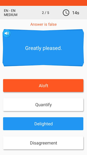 At all levels, even if you answer the questions wrongly, you will be able to see the correct answer, and if desired, you will be able to access the answers of all the tests from the statistics page, so you can improve your English vocabulary with this English vocabulary game.