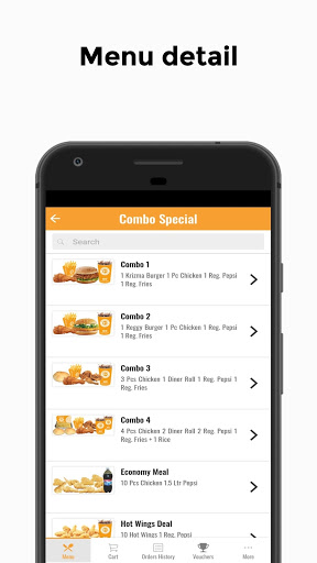 With this app you can see the full Fri-Chicks menu and order what you want.
