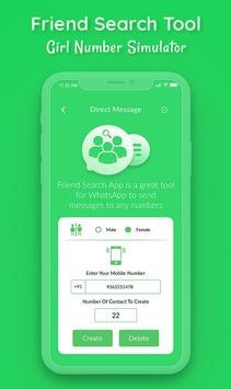 Friend Search Tool Simulator Application which has a simple tool to get random Contacts phone to find a any Other new Friends on your social application And Other Chat Apps Show your friends you are talking with any Other new Friends with her personal mobile phone numbers.