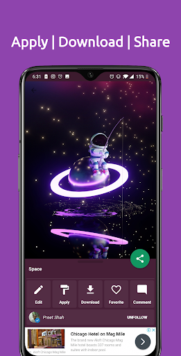 • You can follow people whose wallpapers you like.