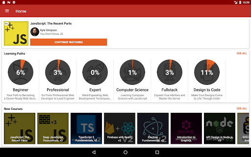 Master the most important JavaScript and front-end development skills like React, Node.js, Vue, Functional JavaScript, CSS Grid, Flexbox, and more — with 150 fresh 🌱 web development courses on Frontend Masters!