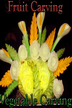 Many types of fruits are used for carving. Vegetable Carrot carving, Cucumber cutting, Tomato carving, Radishes cutting, Chili cutting, Vidoes of Fruit carving, Lemon cutting idea, Leek, Onion cutting carving, Lettuce, Cabbage, Fruit and Vegetable Carving apps, Fruit sculpture, Vegetable sculpture, Fruit and vegetable carving.