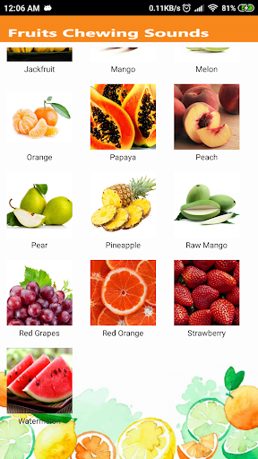 ASMR Fruits sounds give you the collection of many Fruits eating that include Jackfruit, Melon, Orange, Banana, Pear, Mango and many more. ASMR Fruits chewing Sounds is very simple and easy app in which you can find different eating and chewing sounds. Download the app today and enjoy listening to the sounds of chewing. ASMR contain great variety of many Fresh Fruits eating sounds collection.