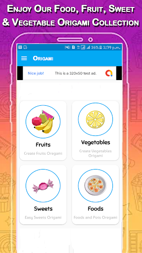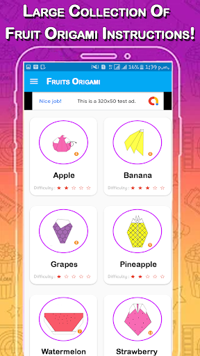 Create your own paper origami from the app categories: fruits, vegetables, candies and much more