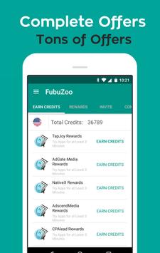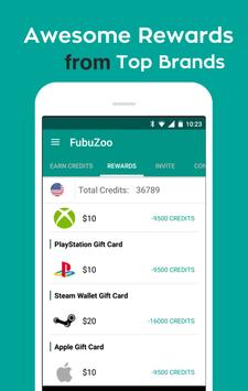 Use FubuZoo to earn Credits and redeem them for cash and free gift cards of your choice! It's easy to earn credits and get rewarded for your by Trying Free Apps, Watching Video Ads, Completing Surveys, Inviting Your Friends, and Logging In Everyday.