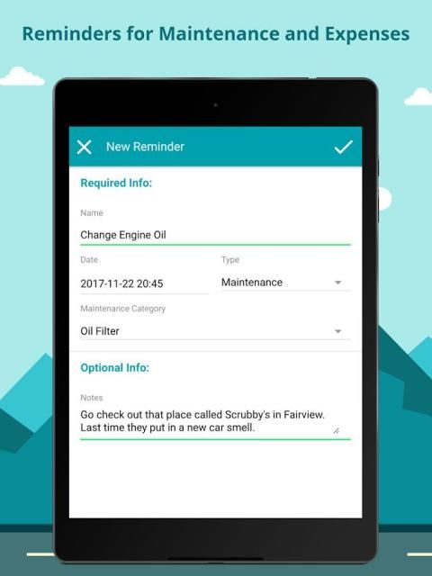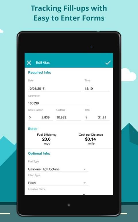 Detailed information for every fill-up can be provided through an easy-to-fill form. Every fill-up becomes part of your vehicle history and you can track things like fuel economy for different petrol stations, different octane levels, or different months.