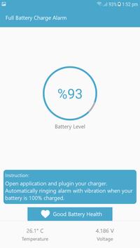Full battery alarm application automatically open when you connect to the charger. This application also shows you your battery information like battery charging current level, battery temperature, battery voltage and your battery health condition.