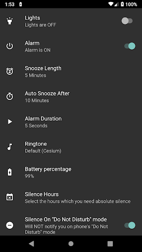 - Plays your favorite alarm tone
