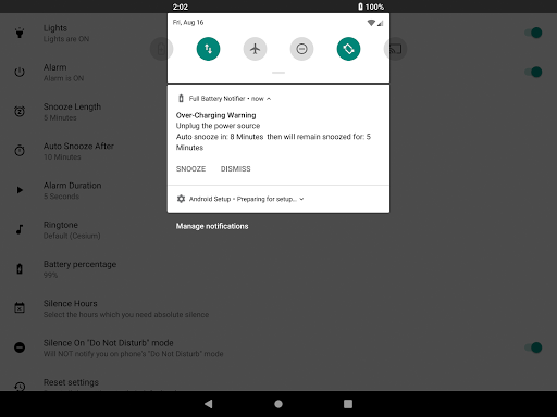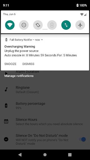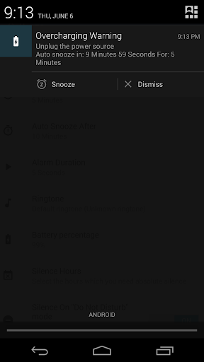 With "Full Battery Notifier" you can leave your phone plugged to the power supply unattended with no worrisome about the battery's health, whenever your phone's battery becomes full the "Full Battery Notifier" will notify you to reach out and unplug it from the power supply.