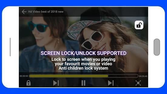 - video player facility to increase or decrease brightness, volume and also you can lock the screen.