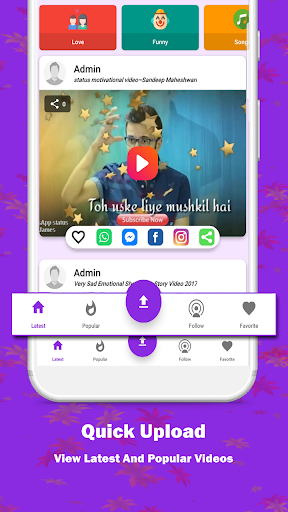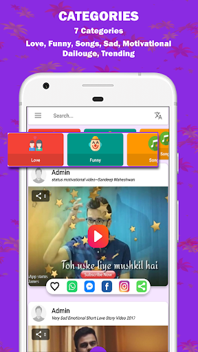 You can also download, share and add status to your favorite social media like WhatsApp, Facebook, Instagram, Twitter, Hike and Snapchat in just one click.