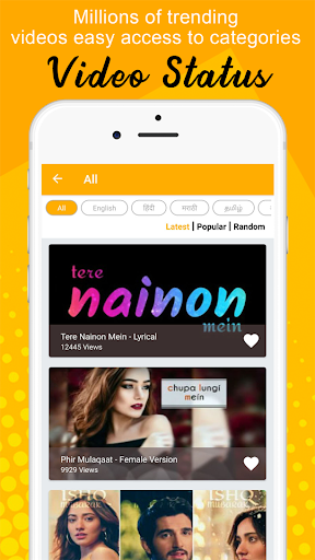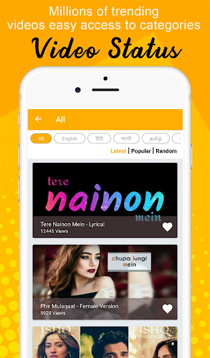 Full screen Status App has a wide collection of latest video at Full Screen Hd view in multiple languages. This Application is the best for sharing Latest funny videos, status, Dp's, memes at your social accounts like Whatsapp, Facebook, Instagram, etc