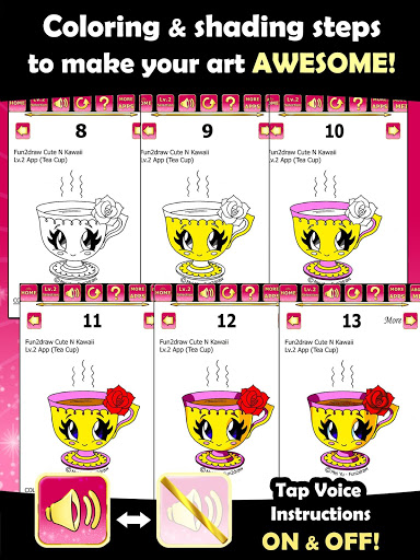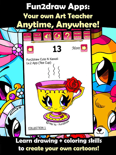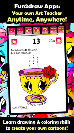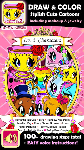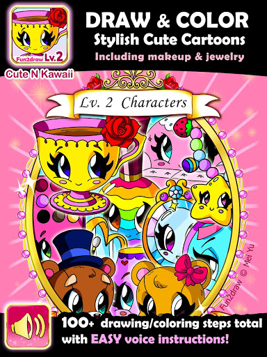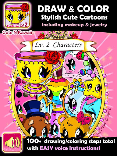 Designed by Canadian artist and Fun2draw creator Mei Yu, Fun2draw Cute N Kawaii Lv2 offers super easy step-by-step drawing & coloring skills to turn simple shapes into beautiful, cute cartoon characters! Learn awesome tips & tricks from this cartoon art instructor to create your own cartoons in no time!