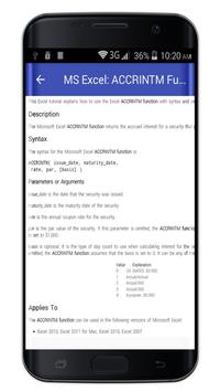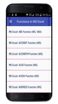 Functions In MS Excel app will guide you through the features of MS excel to help you easily learn Ms excel & excel function and Practice any time.