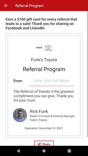Funk's Toyota mobile customer engagement app provides customers with an enhanced dealership mobile experience.