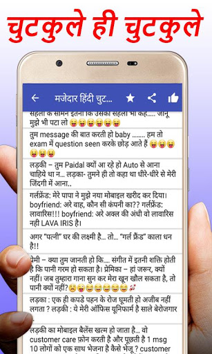 Bu uygulama Hintçe'deki en son ve yeni layfi (şakalar) okumaktır. En iyi ve en son latefi şakaları bu uygulamada. Arkadaşlarla paylaşın ve biraz eğlenin. Tam HD grafikler ve tüm cihazlarda pürüzsüz hale getirmek için çok hafif grafikler. Çabalarımızın tadını çıkaracaksınız. Çok düşük bellek boyutuna sahip sadece 2 MB'dir, böylece kolayca alabilirsiniz.