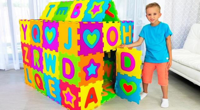 Vlad and Nikita have a toy cafe or restaurant. Children pretend to play in a cafe and deliver toy dishes to their friends Vlad made a tow truck from an ordinary toy car for kids. Vlad ride on car helps Mom and Nikita