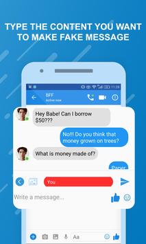 Funny chats - fake messenger app allows you to fake entire fb conversations, fake messages with people in your friend list or stranger 😚. This Funny chats - fake messenger application will add fake conversations to your fb messenger. You can write anything you want in this fake text message app, you will be the author so it is up to your imagination 😘😘.