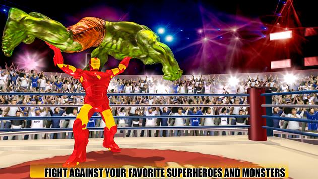 to put him on the ground and let the battle start. You have the super power steel boxing armor hands in flying steel robot. Every incredible monster hero has exclusive potential of punch, kick and jump. Take control on your real super hero and defeat your rivals badly in this clash of monsters. There are many incredible superhero monsters ready to come into the battlefield to fight. Fight to save your city, knockout your all foes with your punching hands and showoff your brilliant super powers like hero games.
